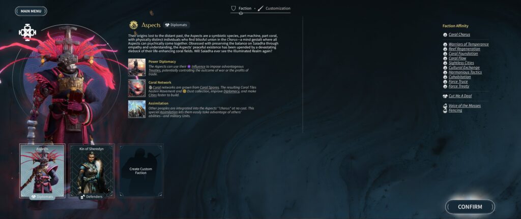 The demo also includes the Aspects as a playable faction. I messed around with the unique faction, which focuses much more on Diplomacy, and spreading their all-important Coral to expand their cities, heal their units, and explore the world. They’re like robot water-hippies who are all about the peace and love, man.
